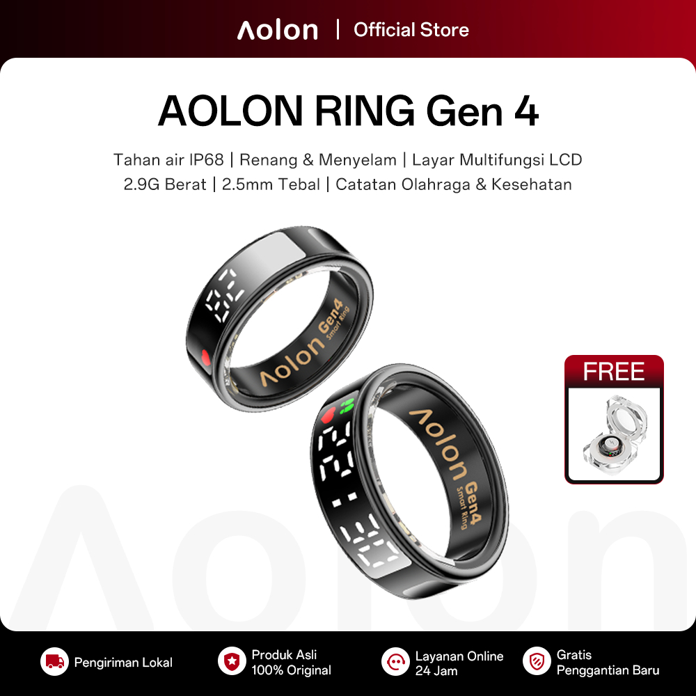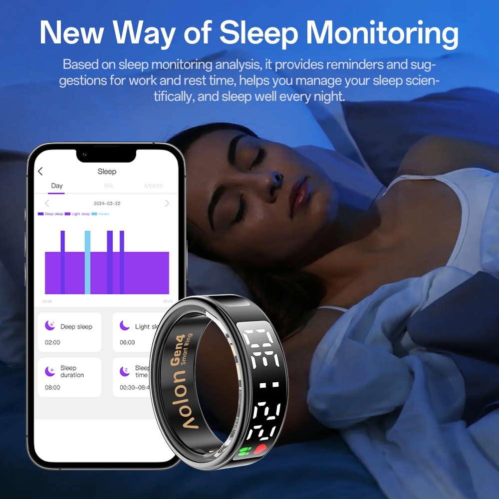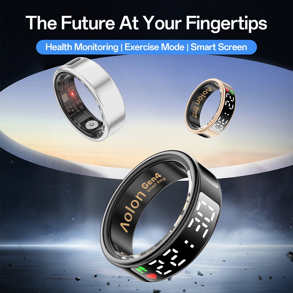 Aolon Ring Gen4 Smart Ring Layar LCD Multifungsi Detak Jantung Oksigen Darah Catatan Tidur Olahraga Berenang IP68