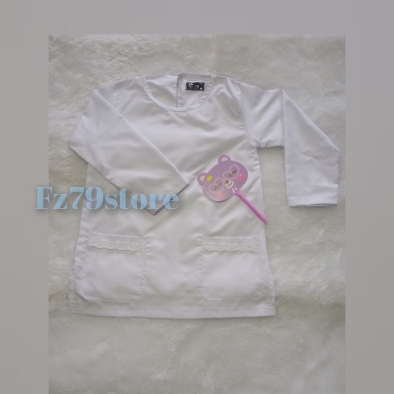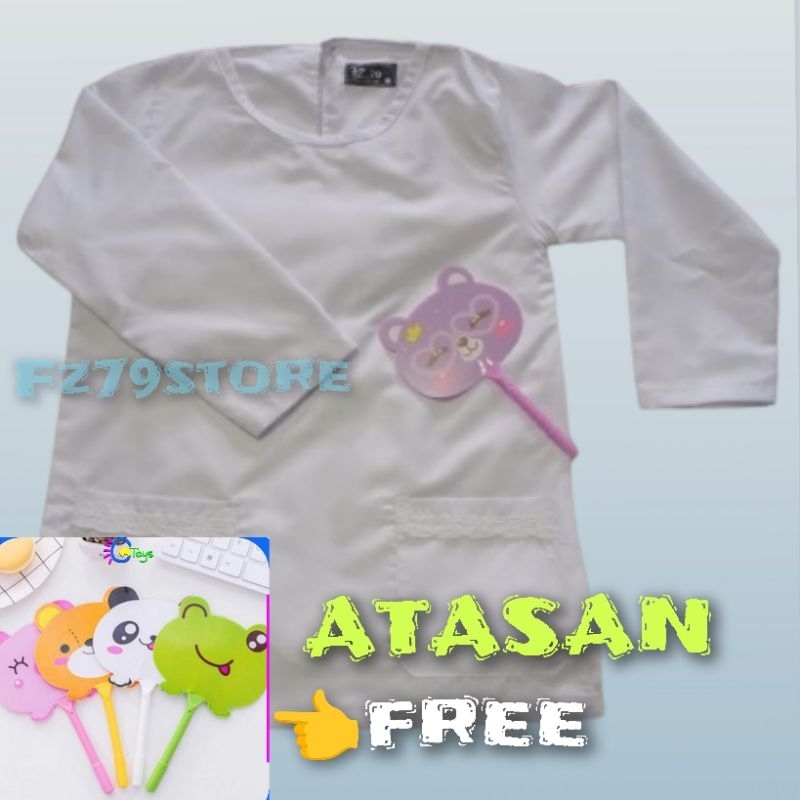 Baju AtasanSaku} Muslim Putih Polos Anak Perempuan Untuk Sekolah Sd/Tpa Pake Saku Depan Terbaru} Free Ballpoint Kipas