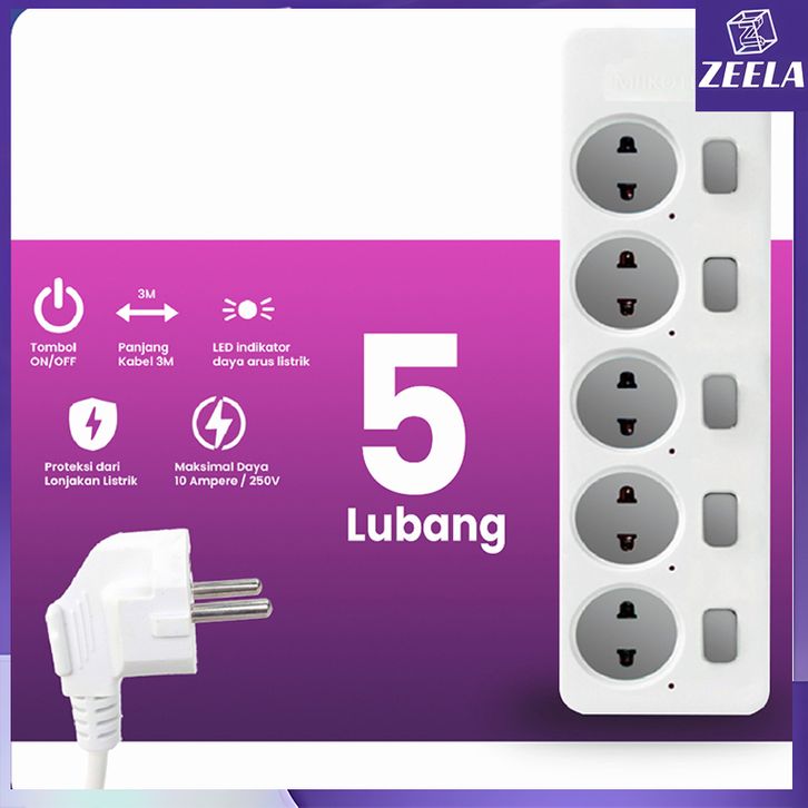 Stop Kontak Kabel SNI Saklar On Off 3/4/5 Lubang + 3/5/10 Meter Kabel Listrik Colokan