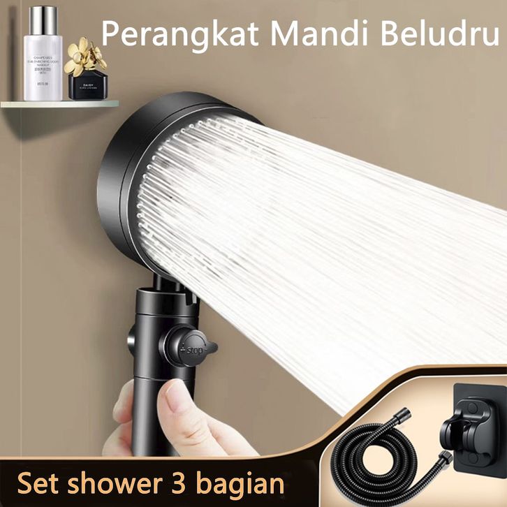 Kepala Shower Mandi Hitam Head Set Premium Dengan Nozzle Bertekanan