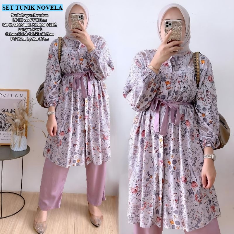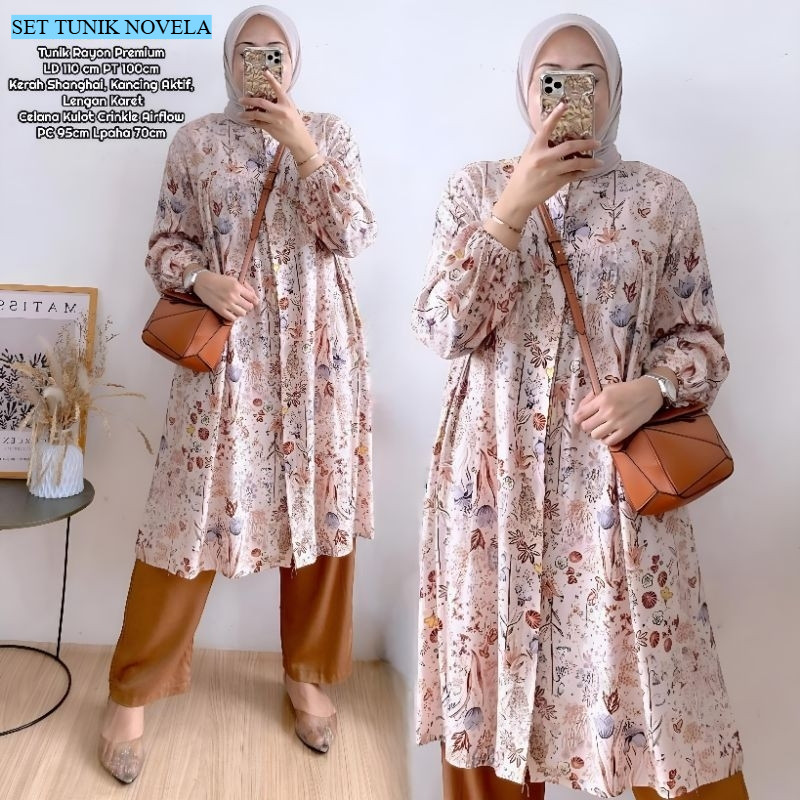 Novela Set Tunik One Set Wanita Busui Kekinian Rayon Premium Baju Setelan Celana Kulot LD 110 cm