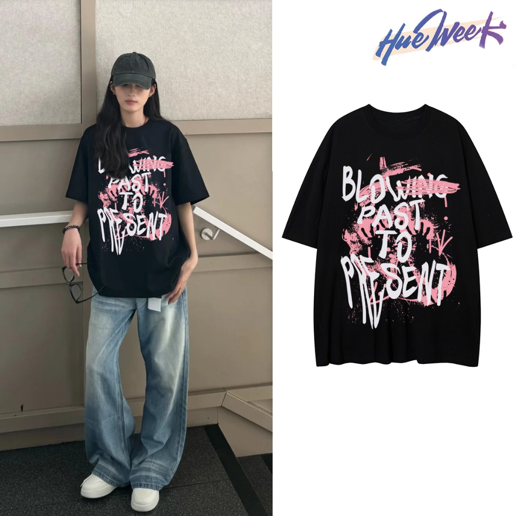 t-shirt Oversize Tshirt Pink Alphabet Graffiti baju big size kaos korea | Kaos baju Wanita pria/210