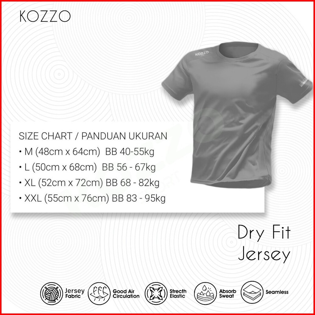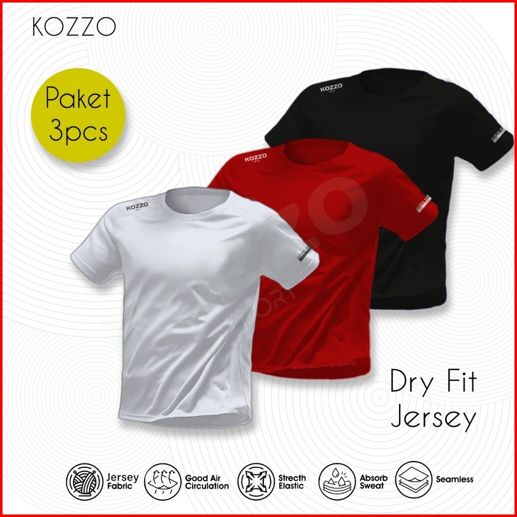 Paket 3 Pcs Kaos Baju Olahraga Pria T-shirt Jersey Lari Kozzo Bahan Dry Fit Breathable Quickdry
