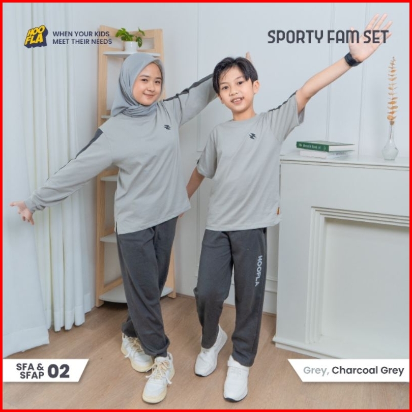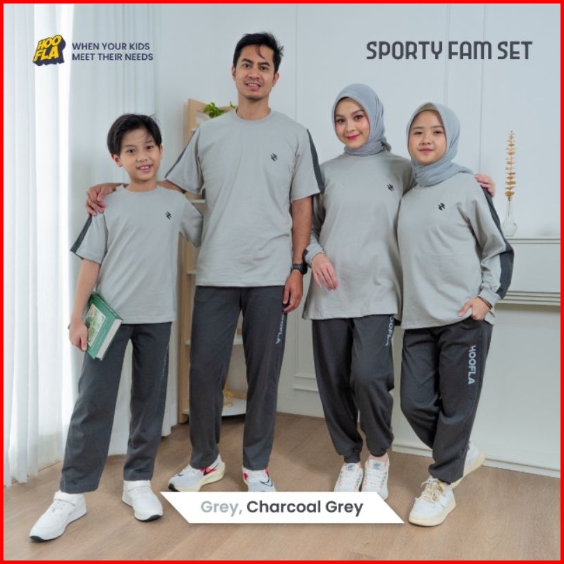 Set Baju Olah Raga Anak Dan Dewasa Sporty Fam Set Grey Baju Sarimbit Olah Raga Hoofla