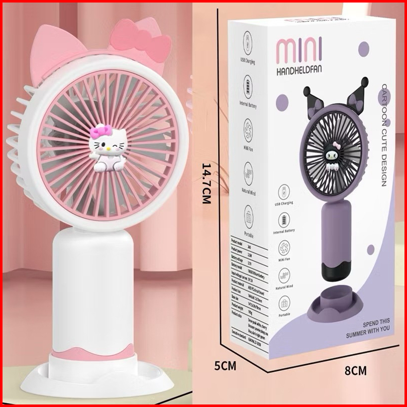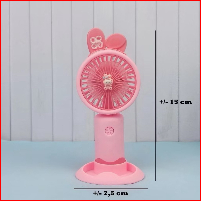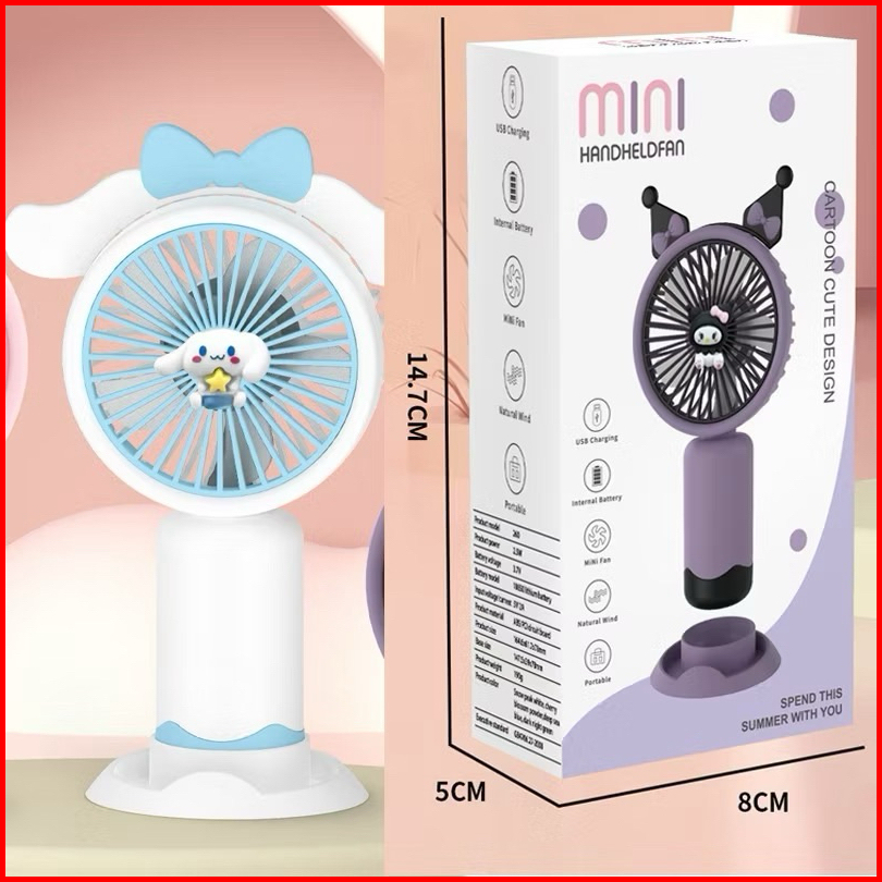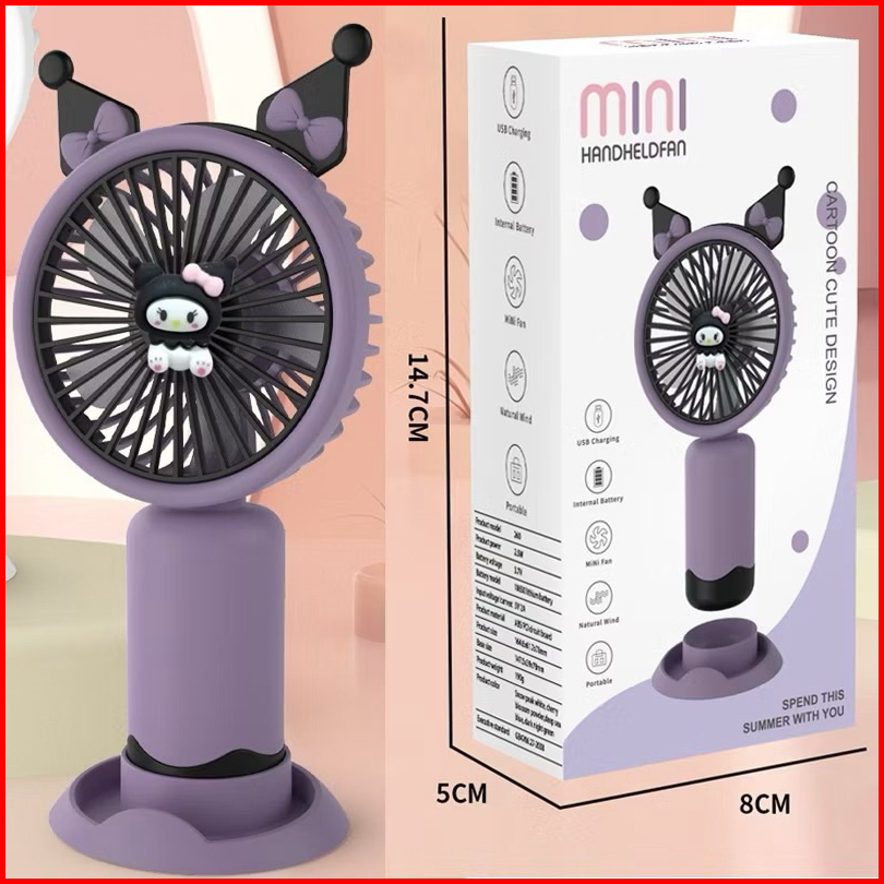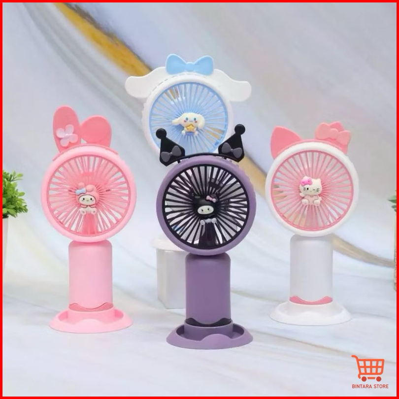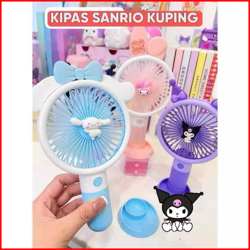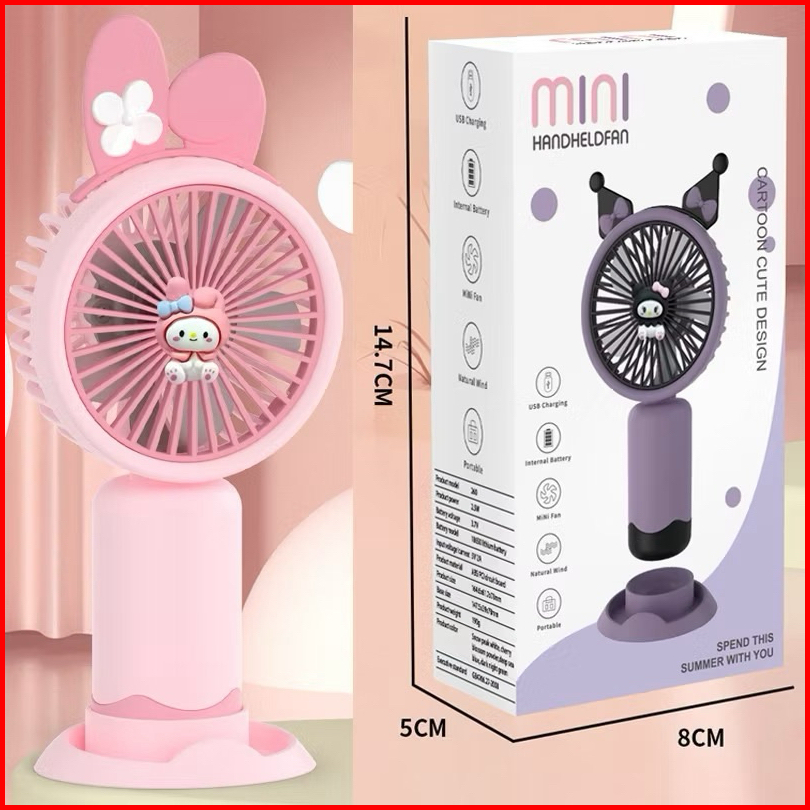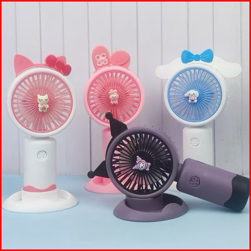 Kipas Angin Portable Mini Fan Karakter Kuromi Melody Cinnamon Tanduk Telinga Sanrio Tangan Stand Genggam