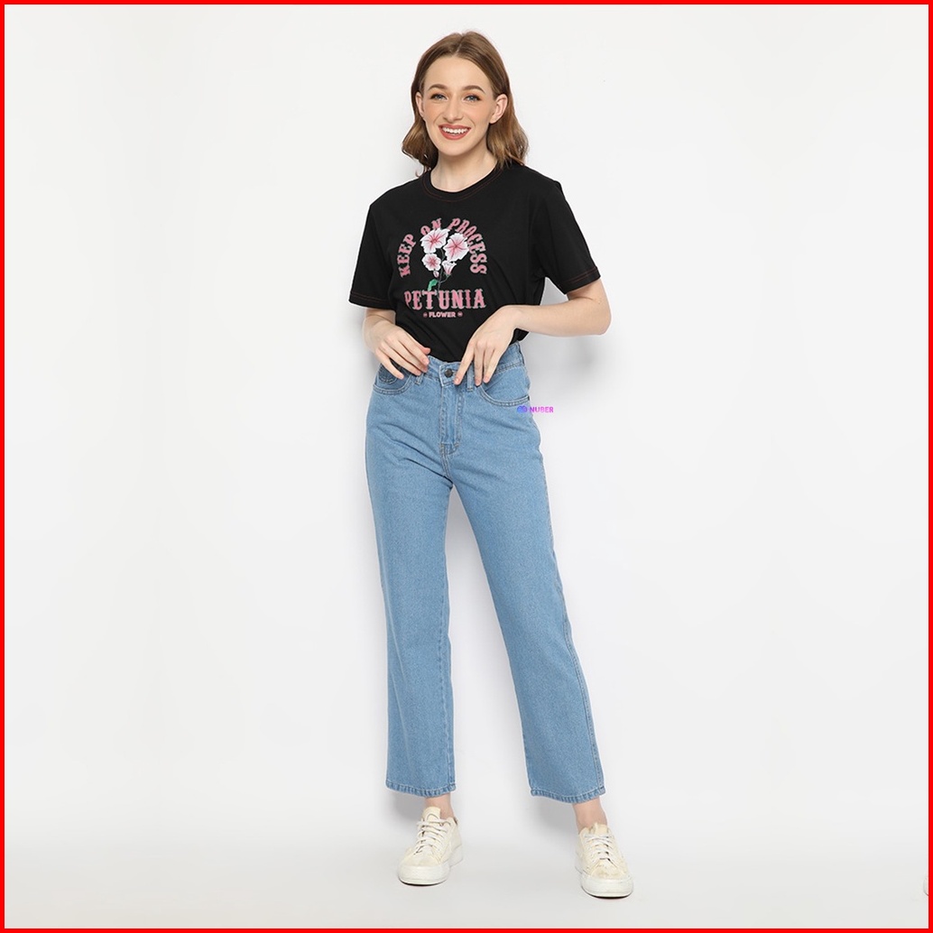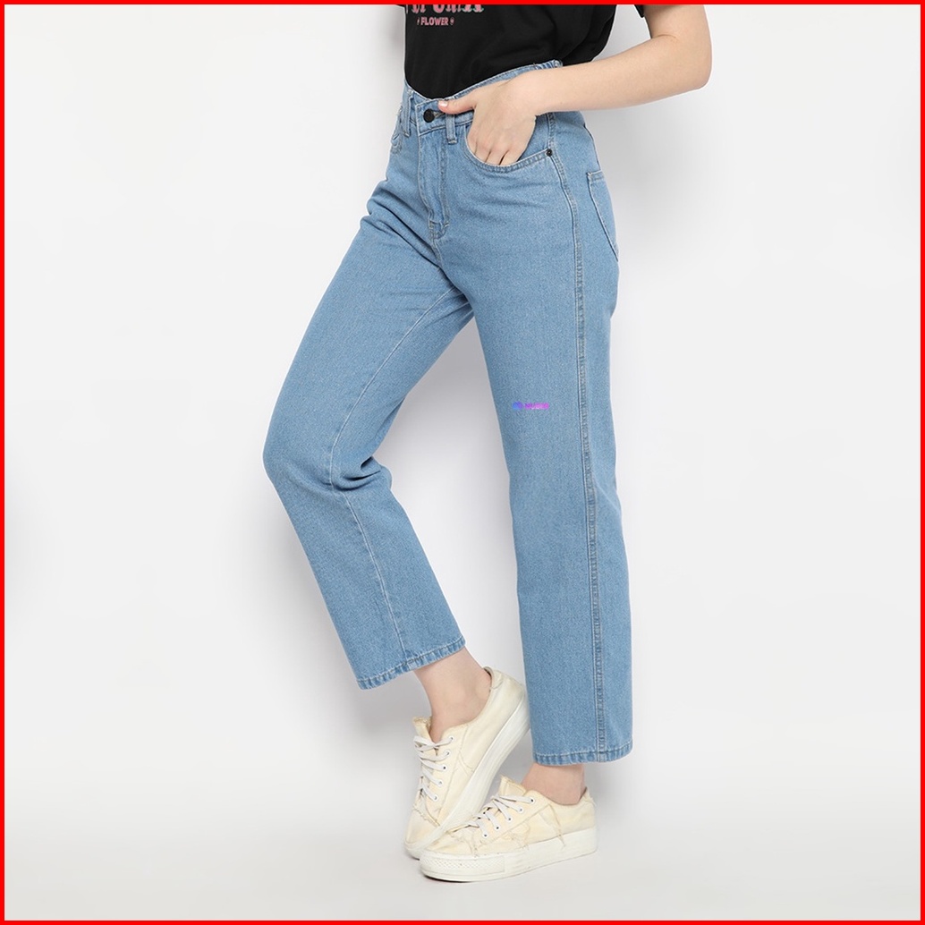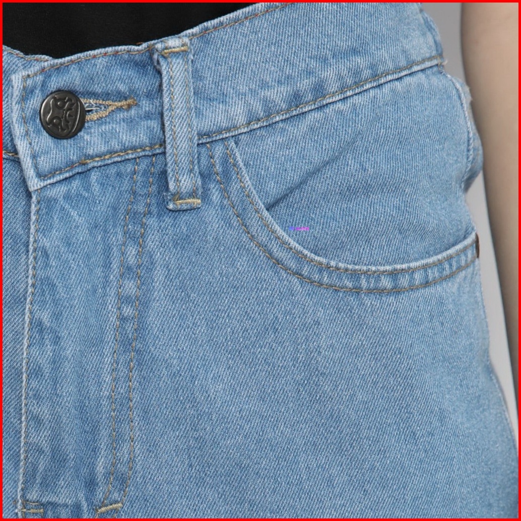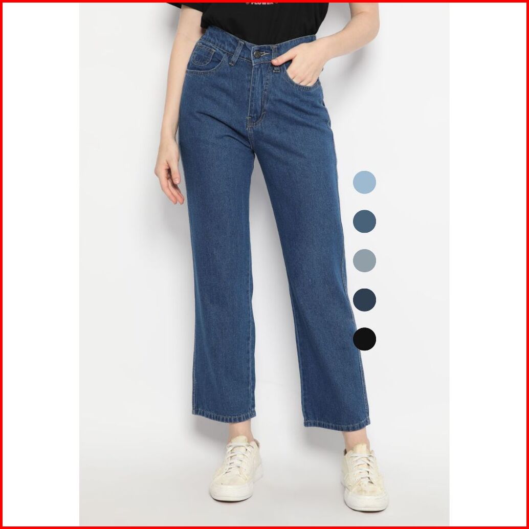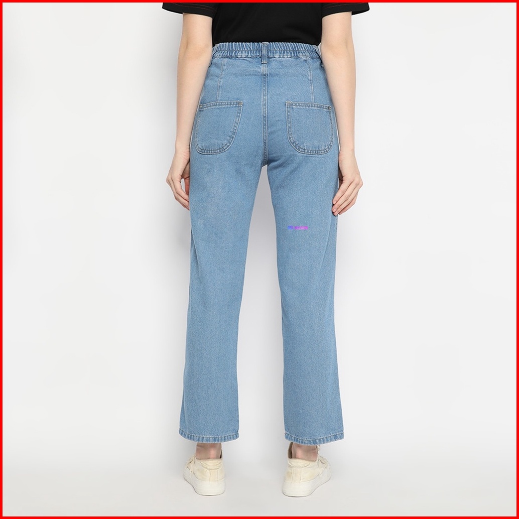 Nuber Baggy Pinggang Karet Highwaist Celana Panjang Jeans Scarlet Hitam Biru
