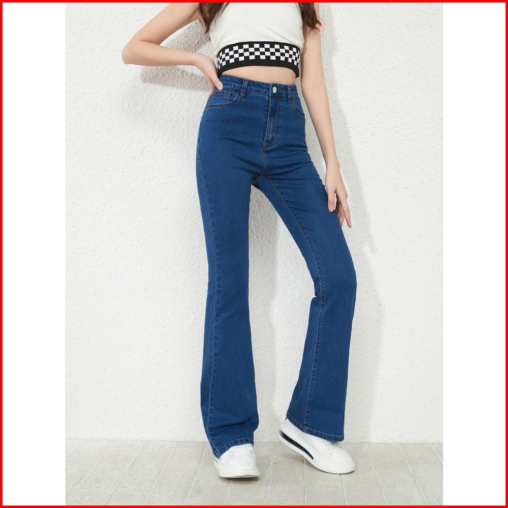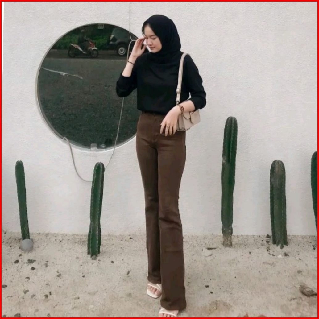 Celana Jeans Panjang Wanita Cutbray Highwaist Korean Style