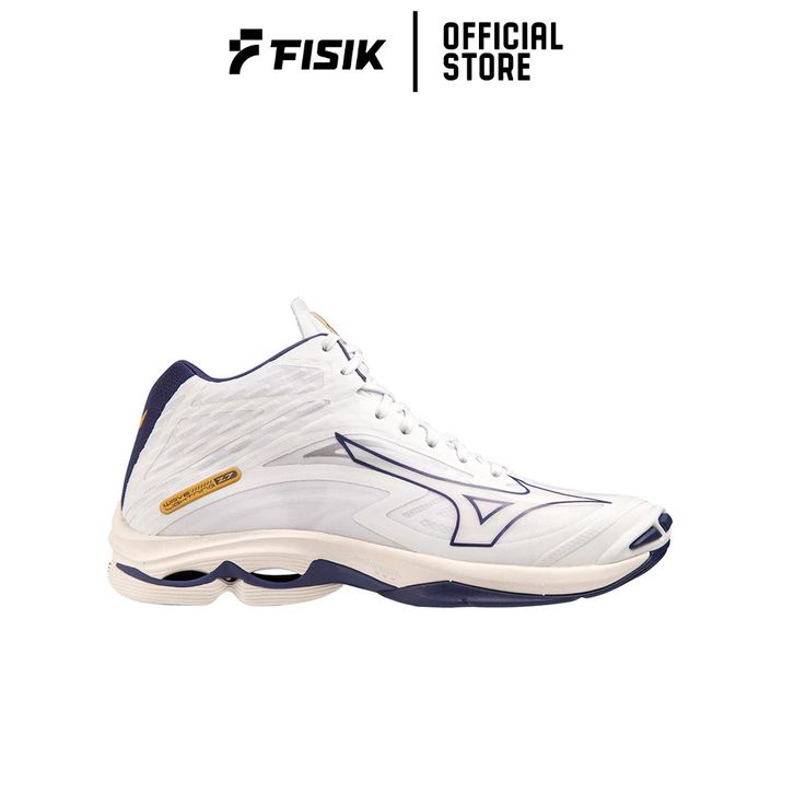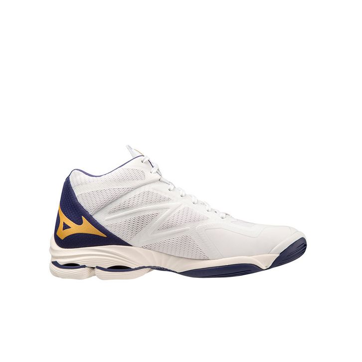 MIZUNO SEPATU VOLLEY WAVE LIGHTNING Z7 MID WHITE BLUE RIBBON MP GOLD MIZV1GA225043