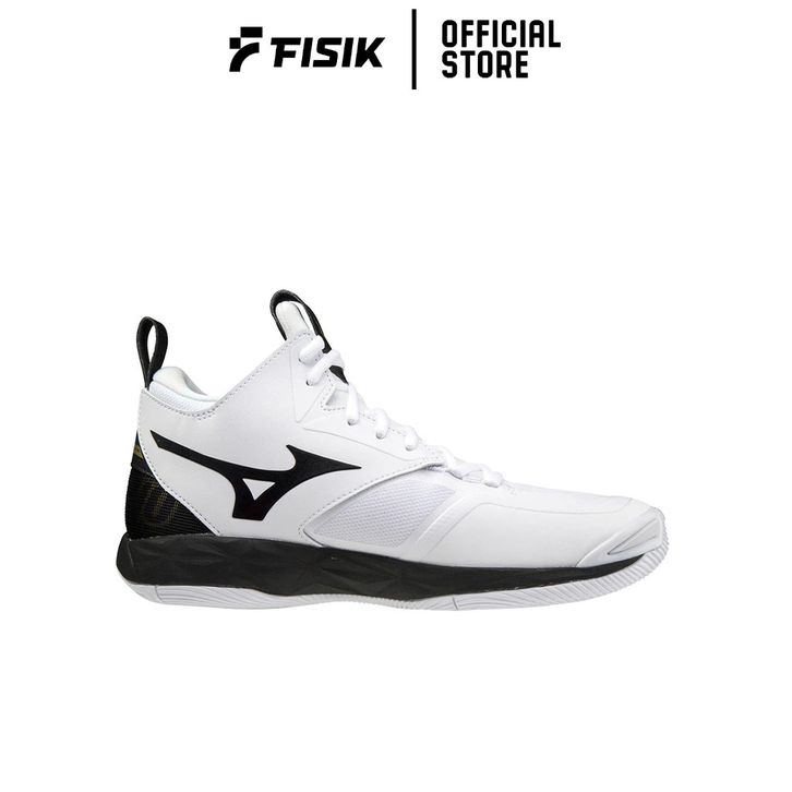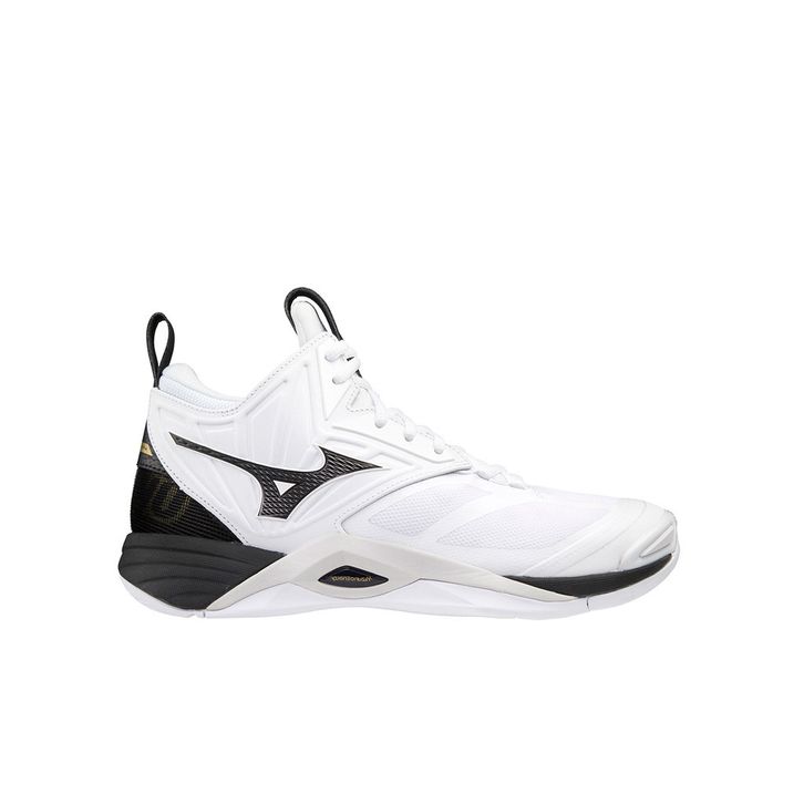 MIZUNO SEPATU VOLLEY WAVE MOMENTUM 2 MID WHITE BLACK GOLD MIZV1GA211709