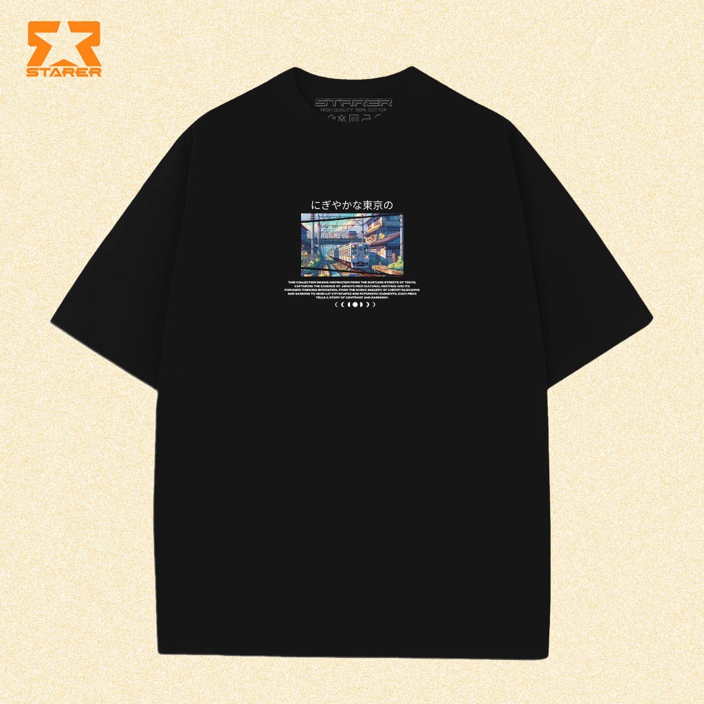 STARER Kaos Distro Lengan Pendek Vintage Cotton Black T-Shirt Oversize Pria Baju Sablon Oblong 0076