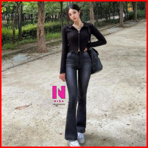 Highwaist Cutbray Jeans Retro Wanita-celana Jeans Cutbray Wanita Model Retro Korea Terbaru