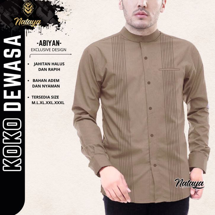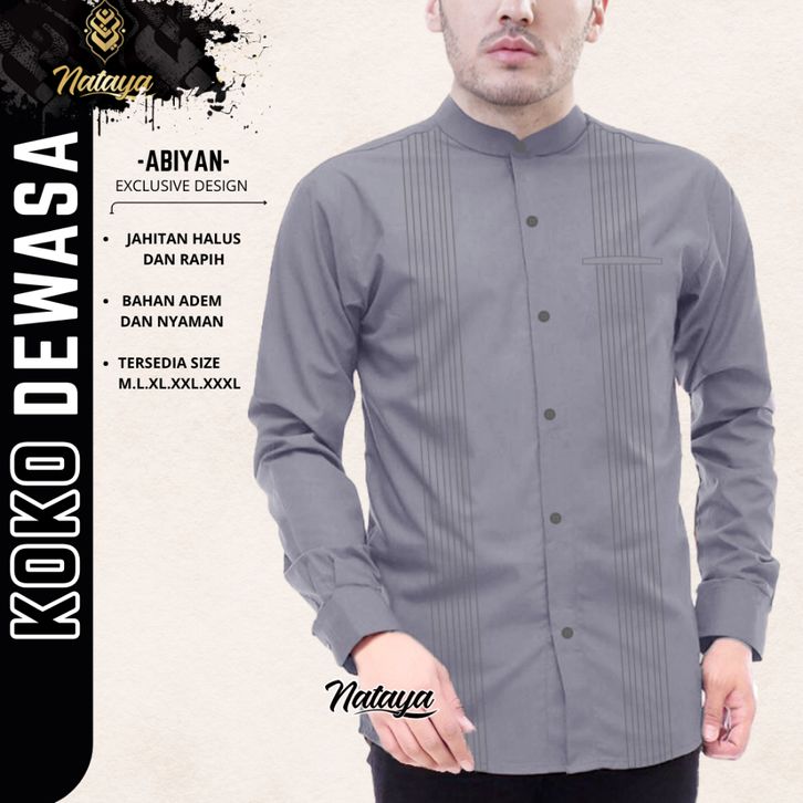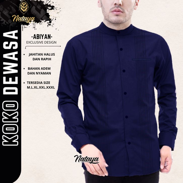Nataya Baju Koko-Kemeja Koko Pria Lengan Panjang Motif Polos Bahan Toyobo 100 %