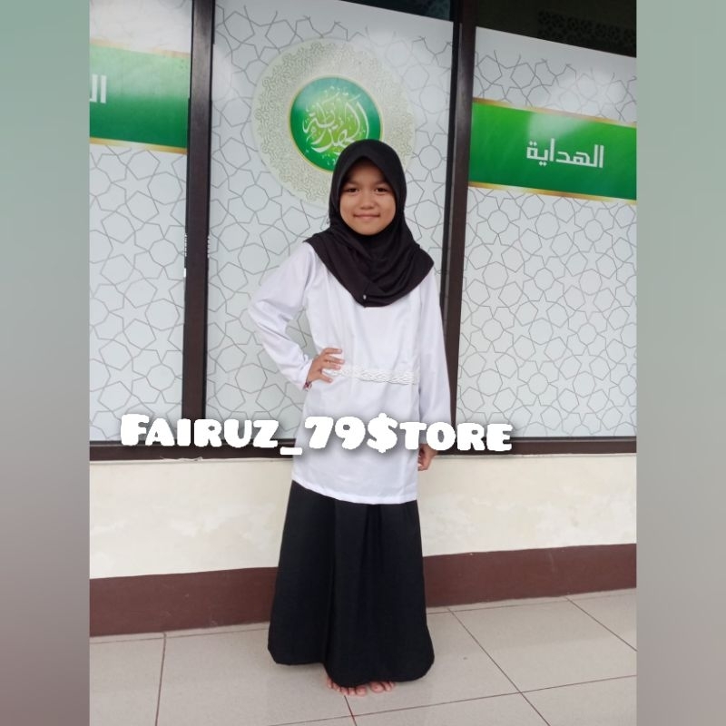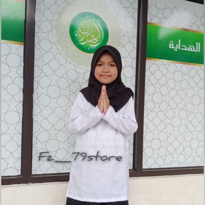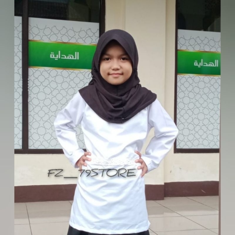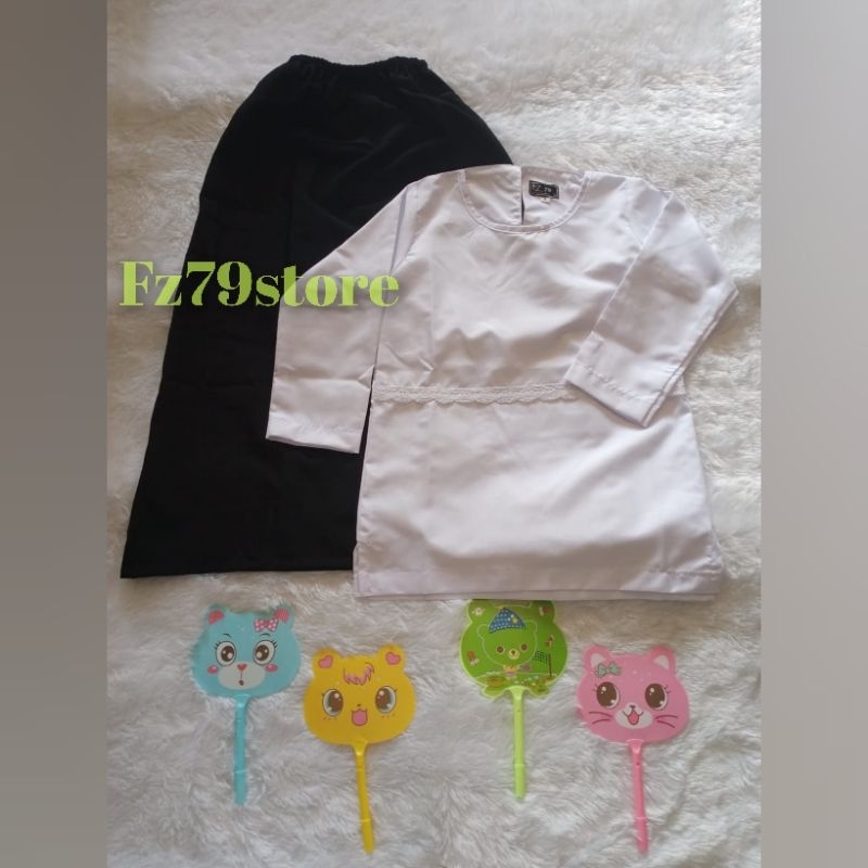 Baju Atasan Busana Muslim Anak Perempuan Katun Senada Putih Untuk Sd/TpaFreee Pena Kipas Karakter