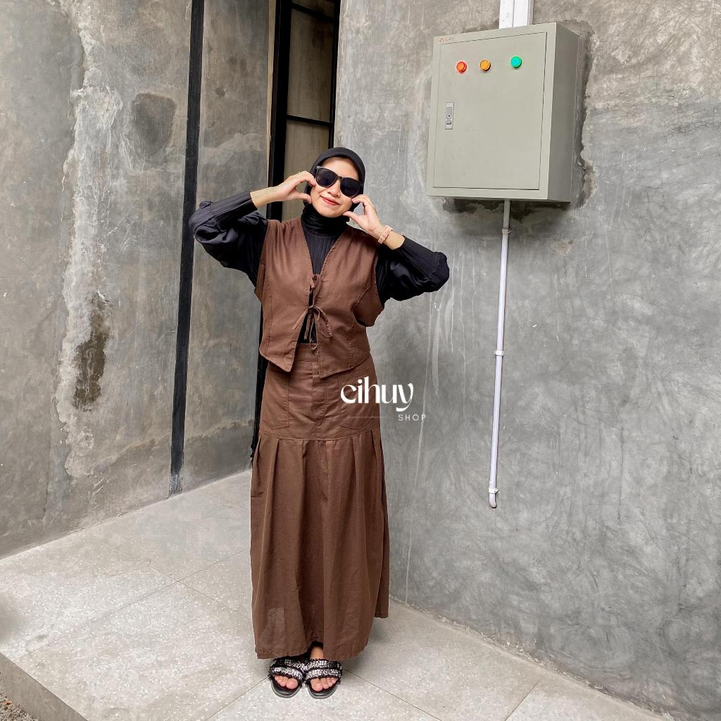 Kaizy One Set Vest & Rok Linen Bigsize Wanita Korean Style