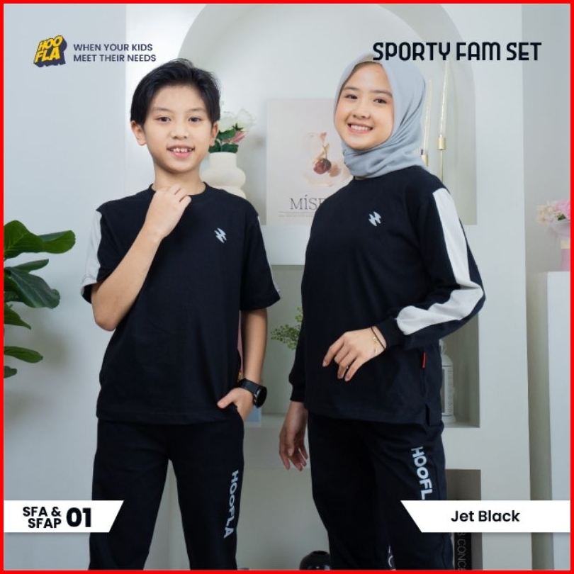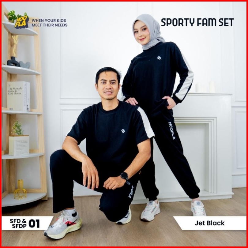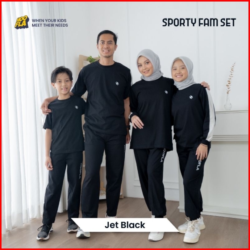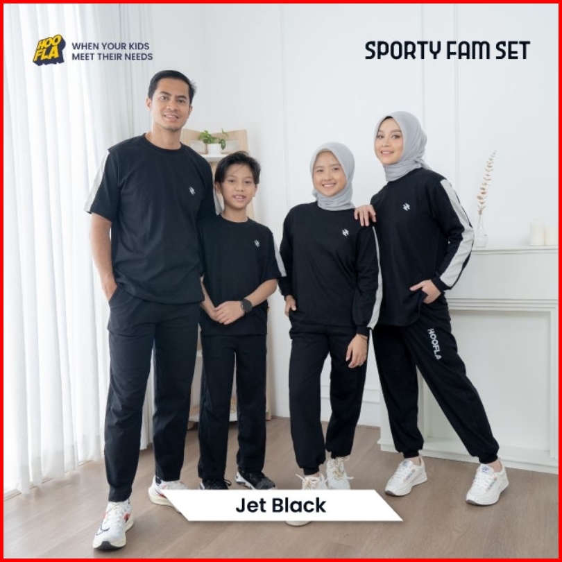 Set Baju Olahraga Anak Dan Dewasa Sporty Fam Set Jet Black Baju Sarimbit Olah Raga Hoofla