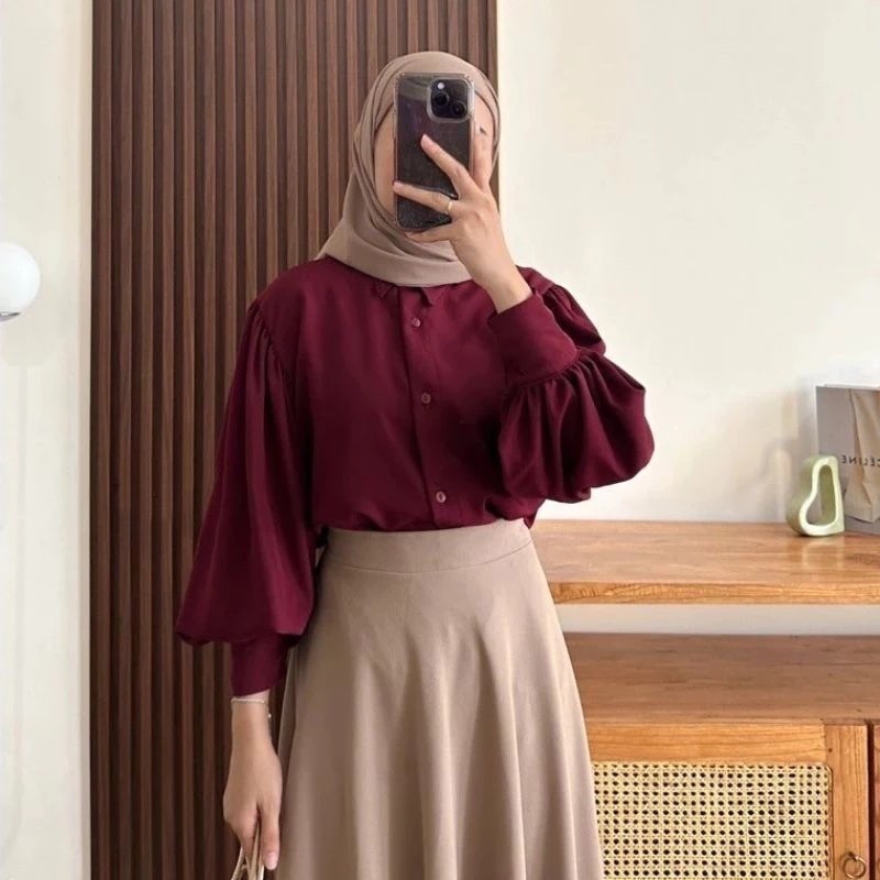 BLOUSE FAYANA LENGAN BALON MODEL / Atasan Wanita Kemeja VENNA Blouse / Kemeja Wanita Lengan Balon Katun Twist – Nyaman &