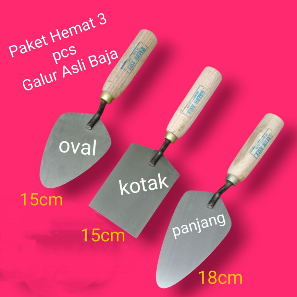 Paket Hemat 3 pcs - Sendok Semen Asli Baja - Ukuran Oval 15cm, Panjang 18cm dan Kotak 15cm