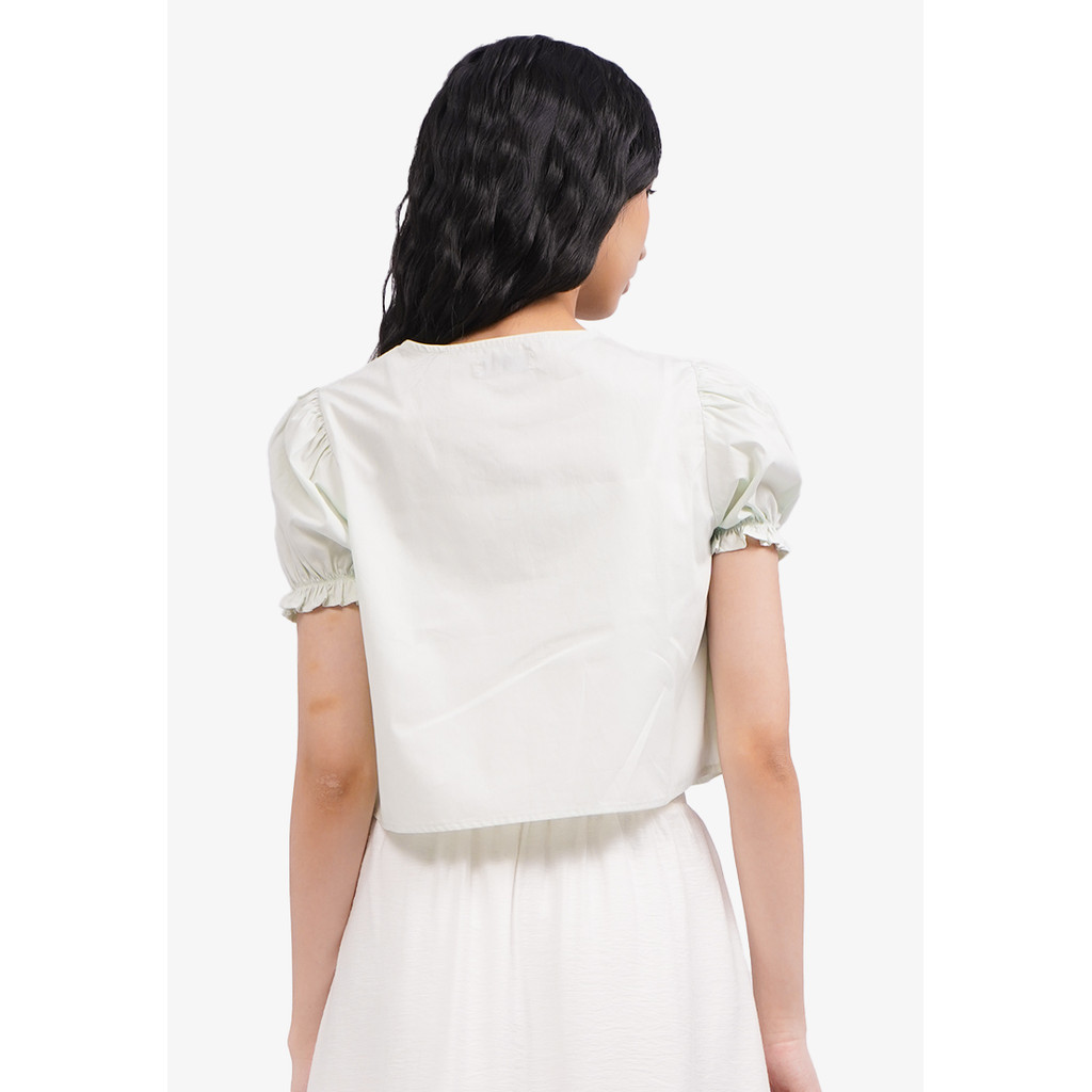 COLORBOX Button Up Puff Sleeves Blouse Tosca