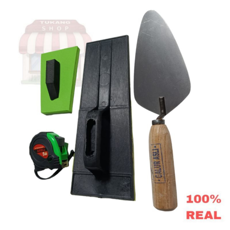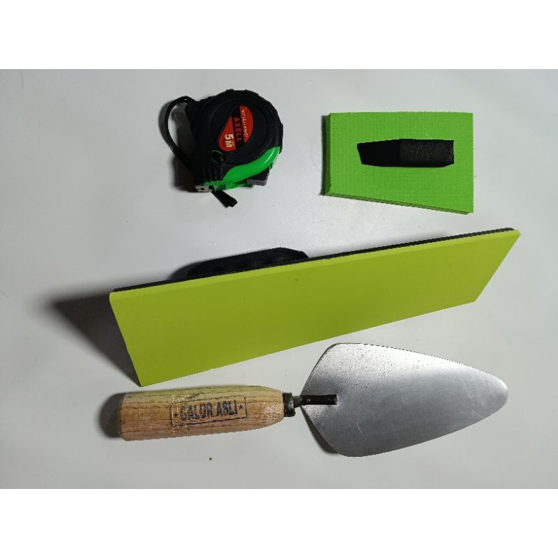 Paket hemat meteran 5m + sendok semen 18cm + pvc spon + gosokan 1cm