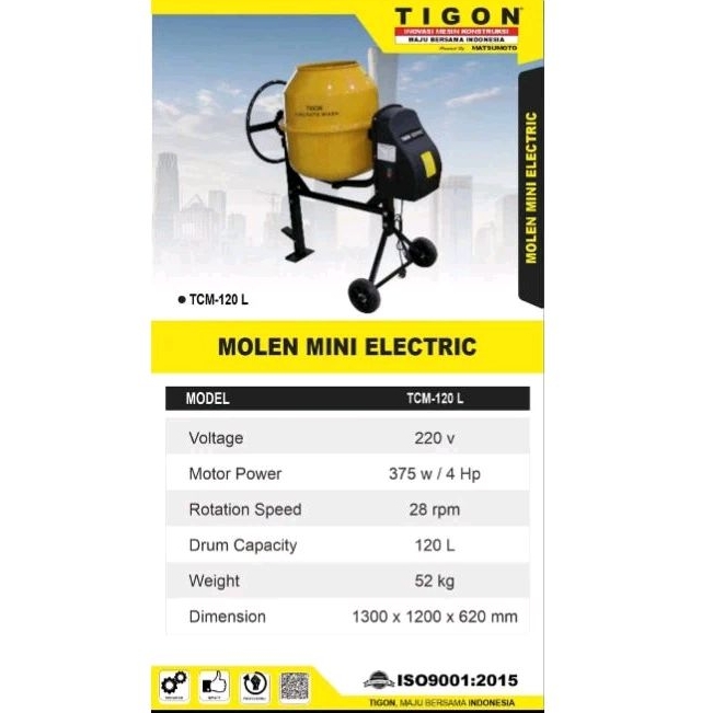 Mixer Molen Mini Listrik Tigon TCM 120 L dan TCM 200 L