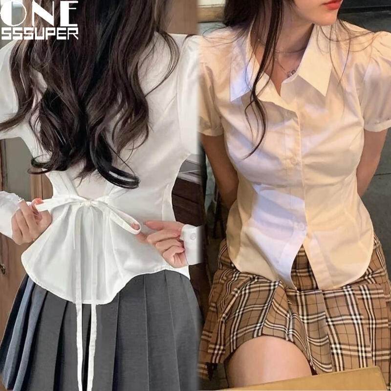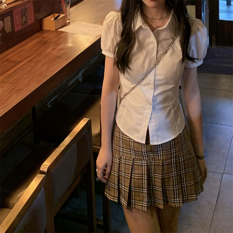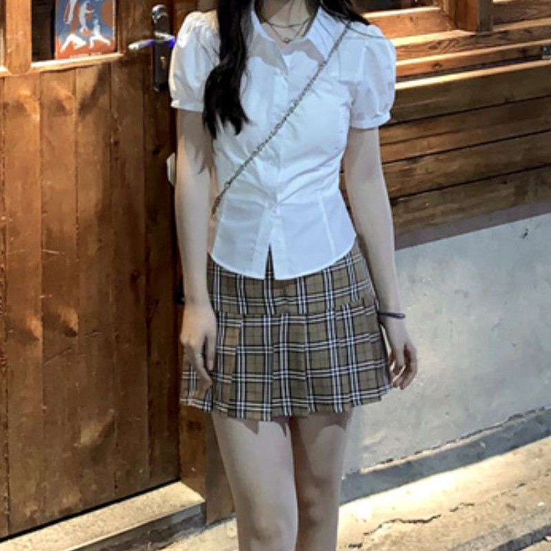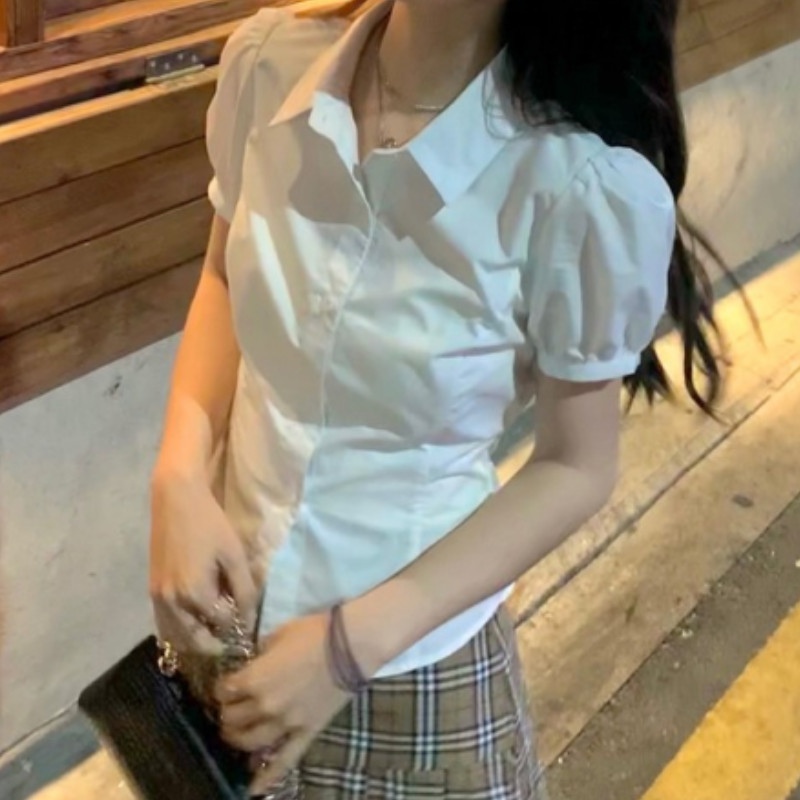 kemeja putih lengan pendek wanita kemeja lengan puff Kemeja putih modis ala Korea