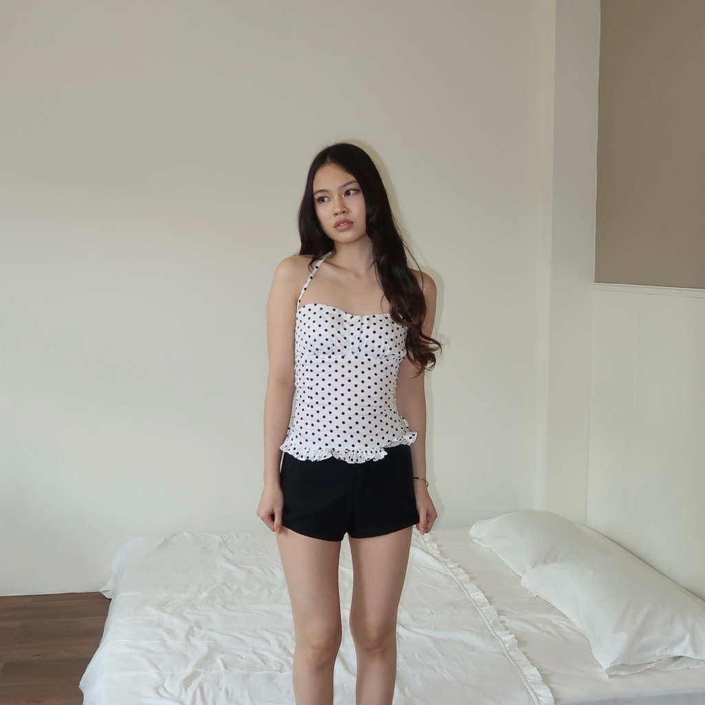 Ivy Top // Ciao Atasan Wanita Polkadot Blouse Ruffle Polka Dot Kamisol Halter