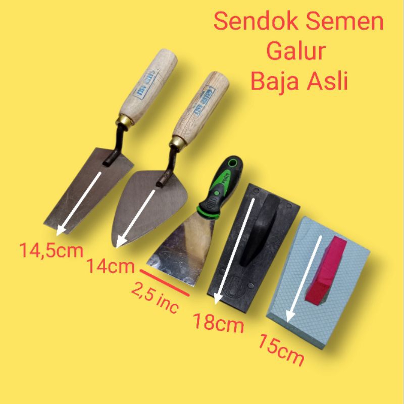 PROMO !!! - Paket Lengkap Alat Bangunan 5 pcs - Sendok Semen 14cm, Sendok Semen Kotak Kecil 14,5cm, Kape 2,5inc,