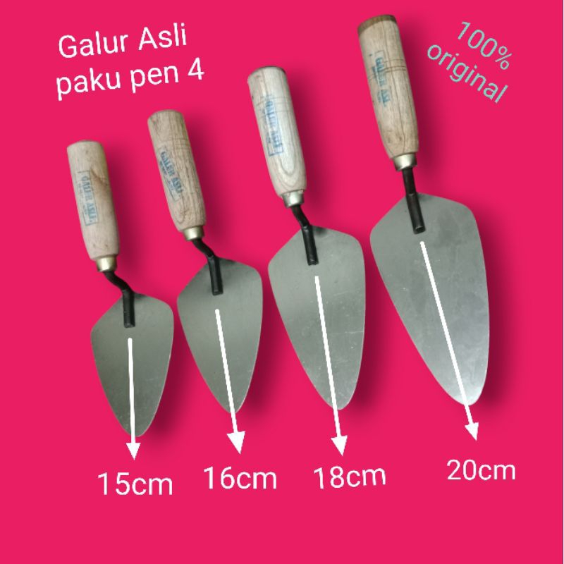 Paket Lengkap 4 pc - /Sendok Semen Asli Baja 16cm, 18cm, 20cm dan oval 15cm Paku Pen 4