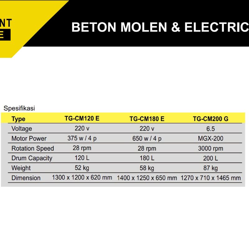 Mesin Molen Mini Electric Tigon 120L dan 180L Terlaris