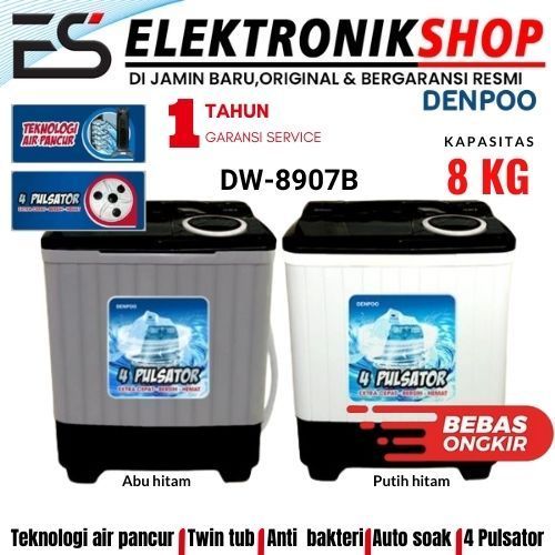 SALE Mesin Cuci Denpoo 2 Tabung 8 KG DW 828 NEW PAPAN GILAS BERGARANS9ratis Ongkir