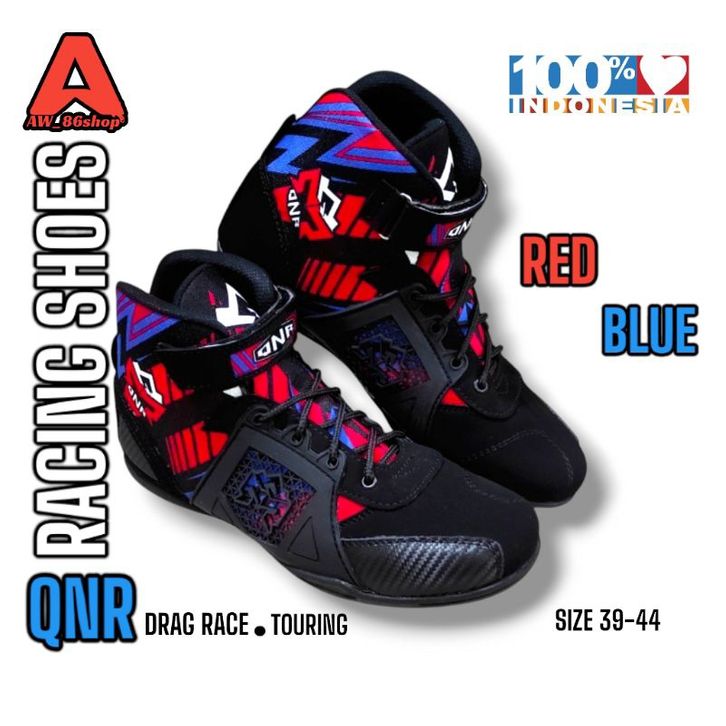 SEPATU BALAP DRAG RACE ROAD RACE TOURING QNR RACING SHOES BIKERS SUNMORI TOURING RED BLUE PAKET HEMAT