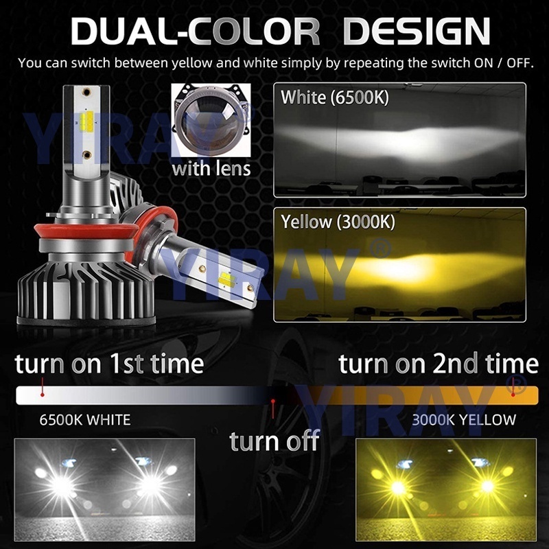 Tricolor LED Headlight H4 H11 H7 9005 HB3 9006 HB4 H1 H8 H9 9012 HIR2 Led lamp CSP CHIP Car Fog Light Bulb Canbus 12V 12