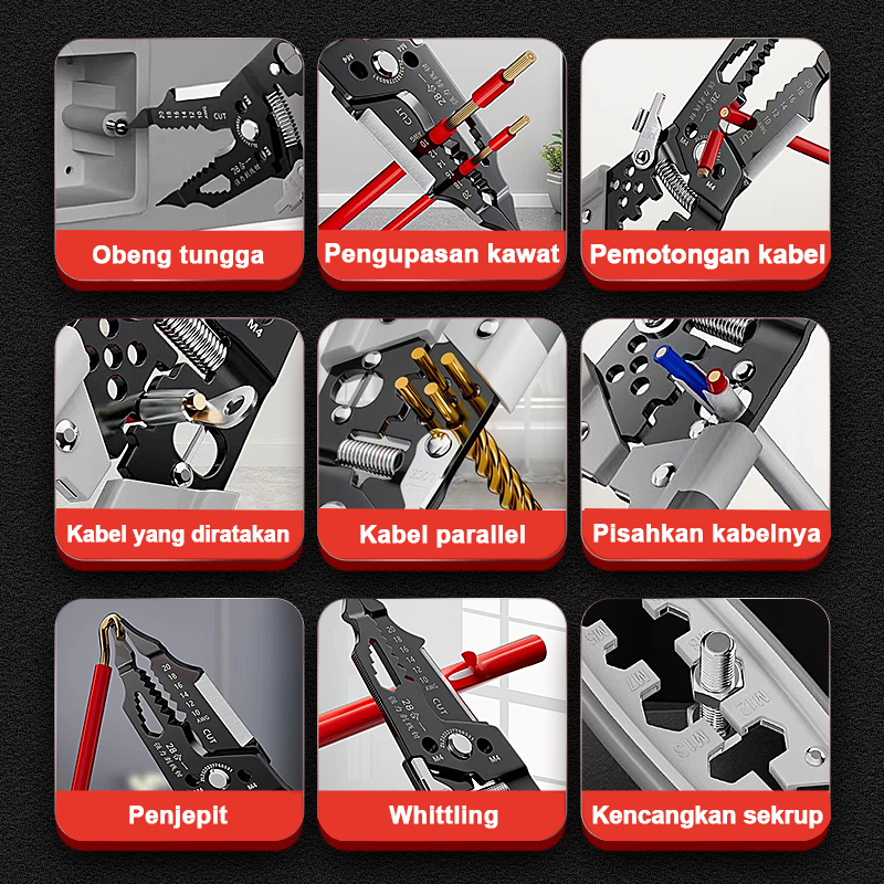 NESO Tang Kupa Kabel 24 IN 1 Stripper Dekrustasi Pengupas Multi Alat Tang Alat Perbaikan Multifungsi Pe