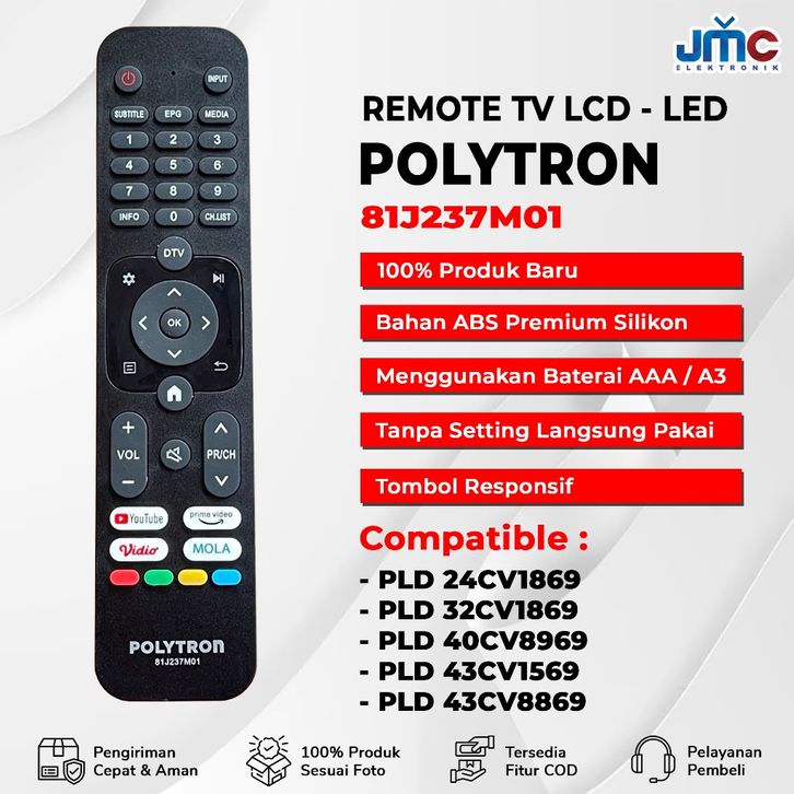 Remote Remot TV Smart Polytron PLD 43CV1569 43CV8869 40CV8969 32CV1869 24CV1869 81J237M01