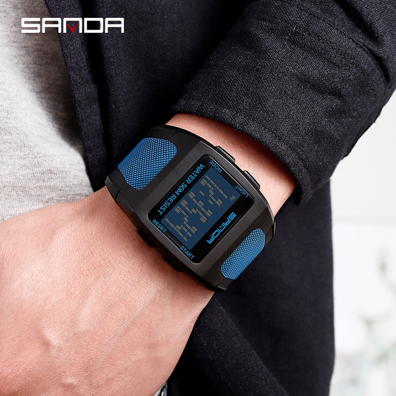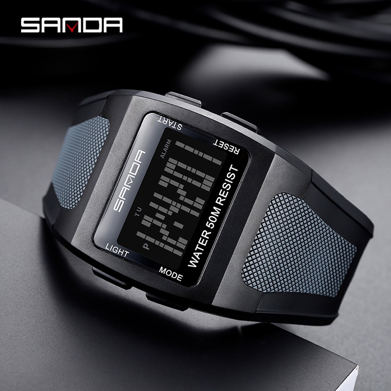 SANDA 222 Jam Tangan Pria Digital Sport EL Backlight Tali Rubber Anti air