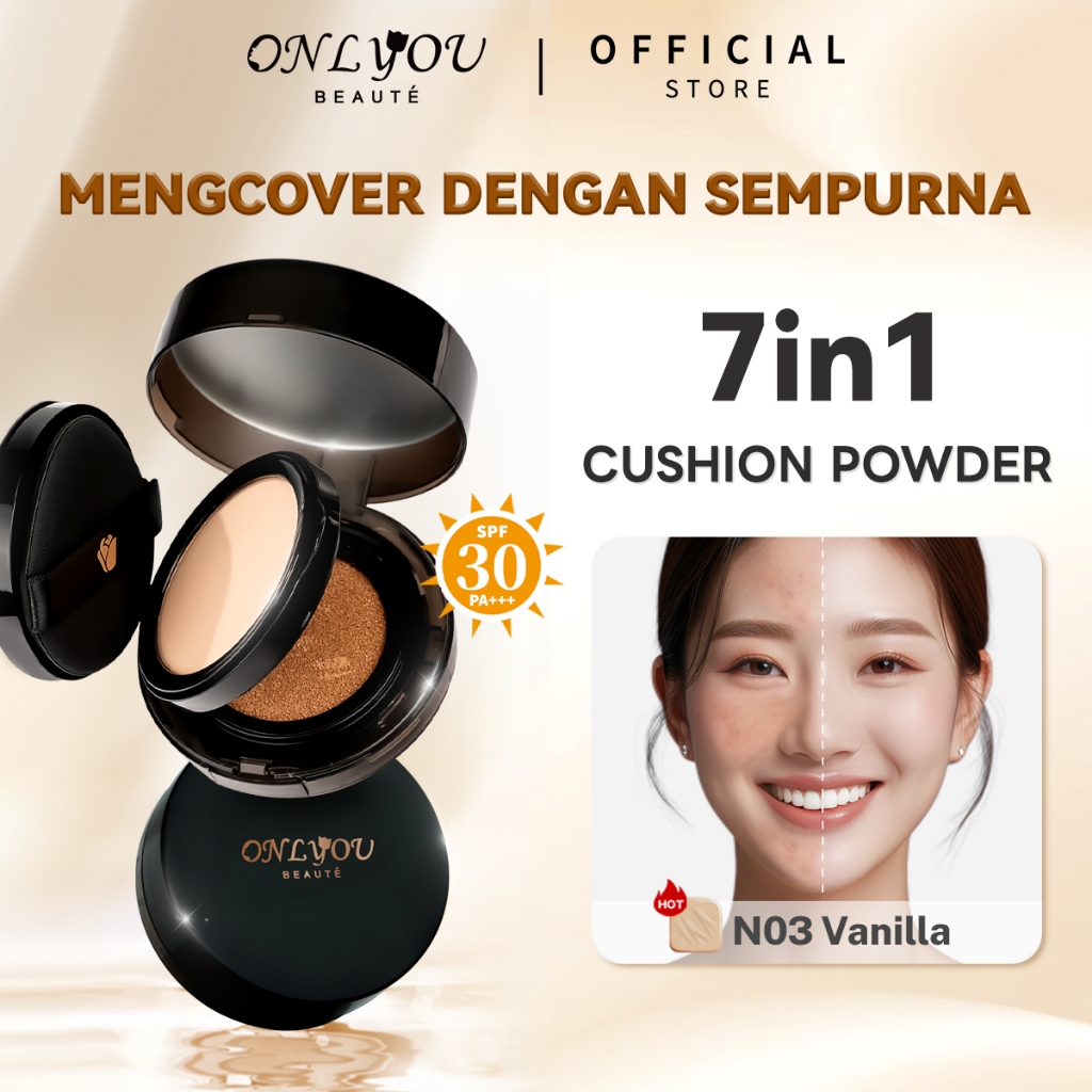 ONLYOU 7IN1 ULTRAWEAR DOUBLE CUSHION POWDER SPF30 PA+++ 8X ROSE SERUM 12G+7G FULL COVERAGE MATTE OIL