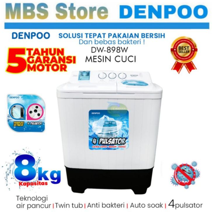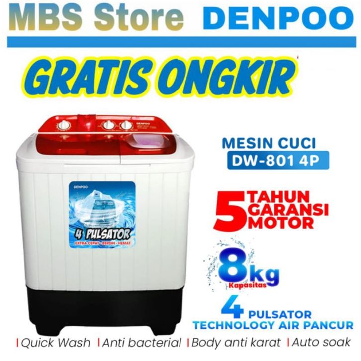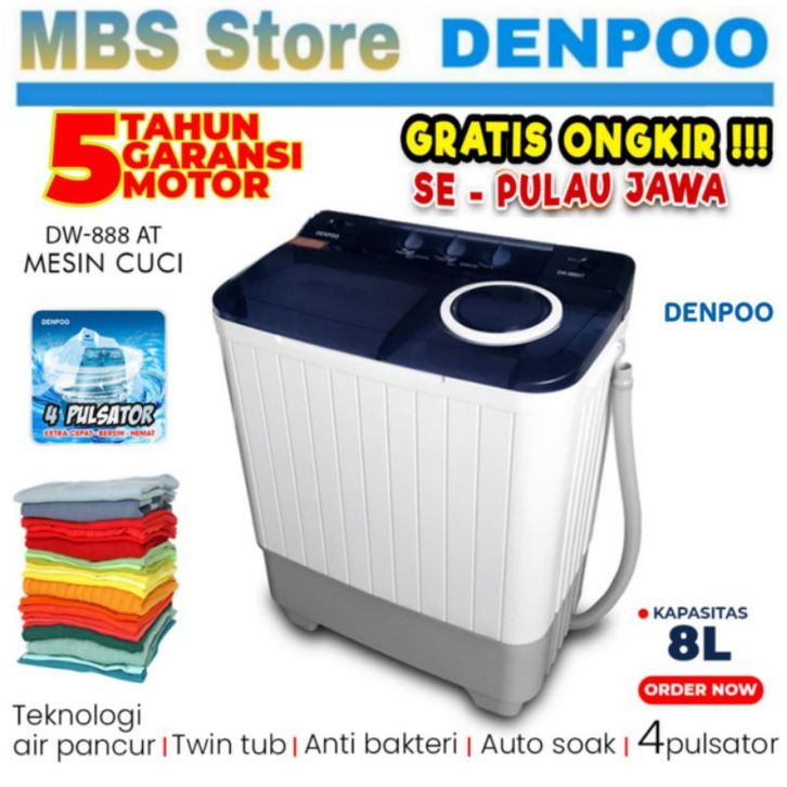 KHUSUS FREE ONGKIR KOTA SURABAYA & SIDOARJO/MESIN CUCI DENPOO HEMAT LISTRIK AIR PANCUR 2TABUNG 8KG