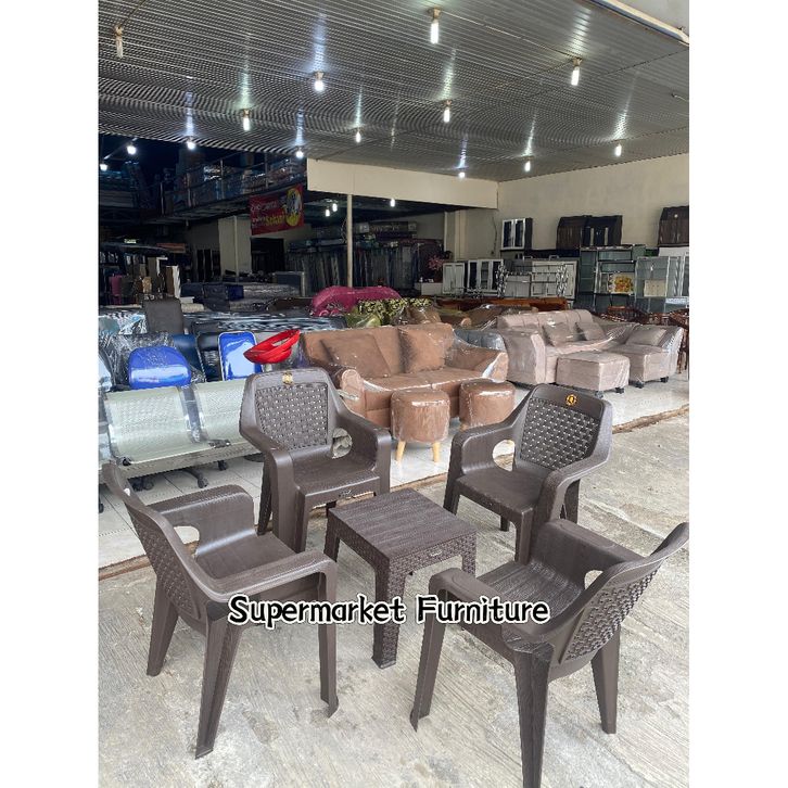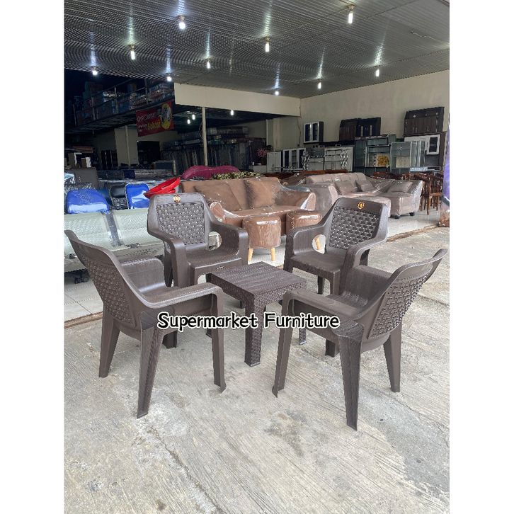Terlaris KURSI SET 4 KURSI TERAS PLASTIK NAPOLLY BIG BROS 832 KOPI RATTAN BB 832 + MEJA MAPAN 45 Keren