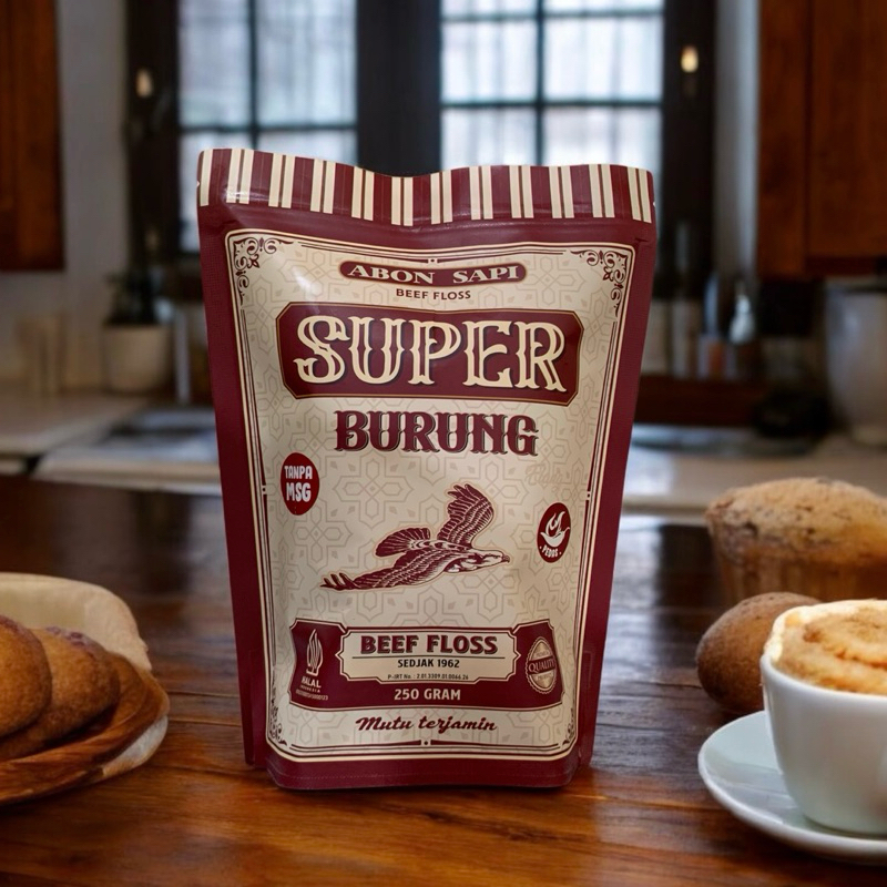 Abon Sapi Super cap Burung Elang 250 gram Kemasan Ziplock | Boyolali | Abon Sapi Halal 100% Daging Asli | Tanpa MSG & Ca