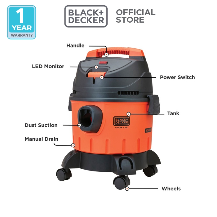 Vacuum Cleaner Black+Decker BDWD10-B1 – Wet & Dry, 1200W, Kapasitas 10L
