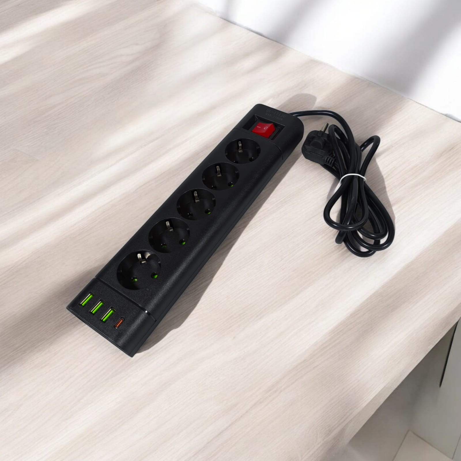 YIGOU Stop Kontak 5 Lubang USB Type C EU Plug 10A 110-250V 2500W - 1113U - Black