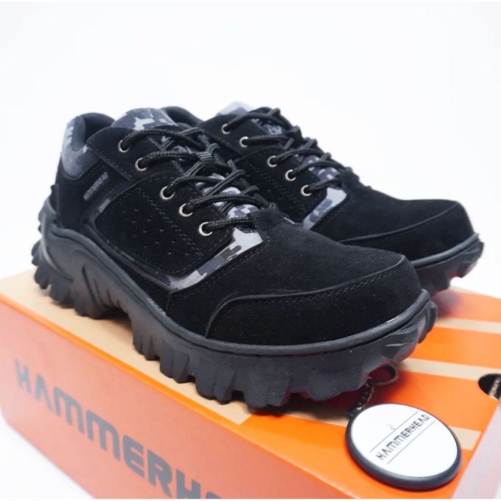 Hammerhead Sepatu Pria Safety Boots Oscar Cammo Low Black Ujung Besi