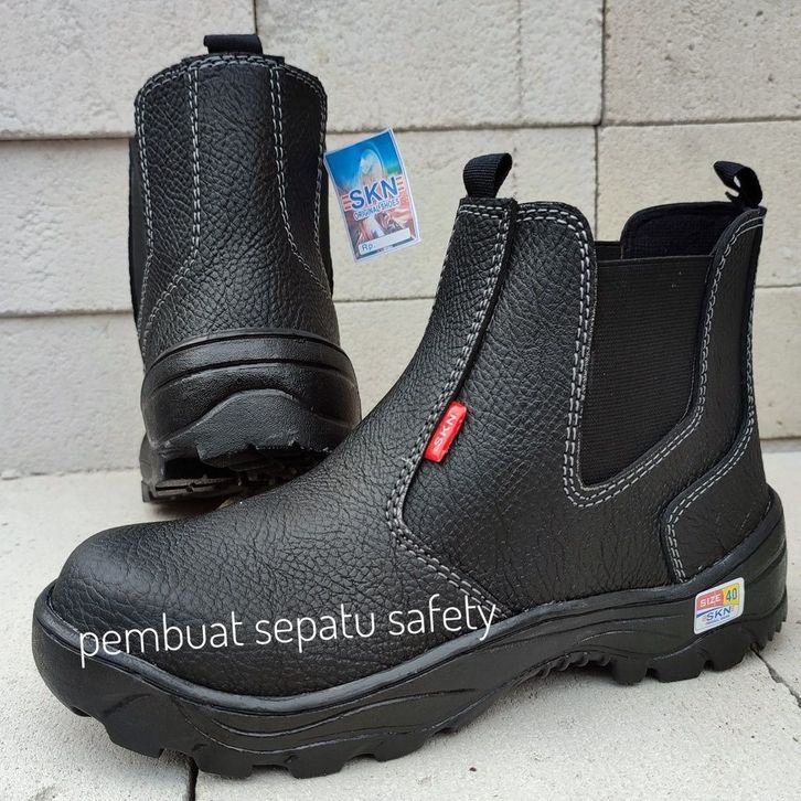 Sepatu Safety Elastis Slip On Boot King Skn Kulit Buatan Terbaik Ujung Besi Terlaris Termurah Keselamatan Kerja Pabrik