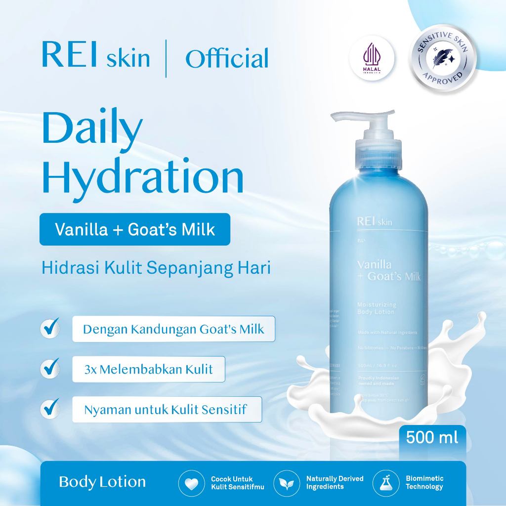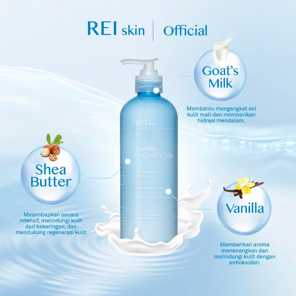 BODY LOTION REI SKIN 500 ML VANILLA GOAT'S MILK MOISTURIZING PELEMBAB BADAN ORIGINAL