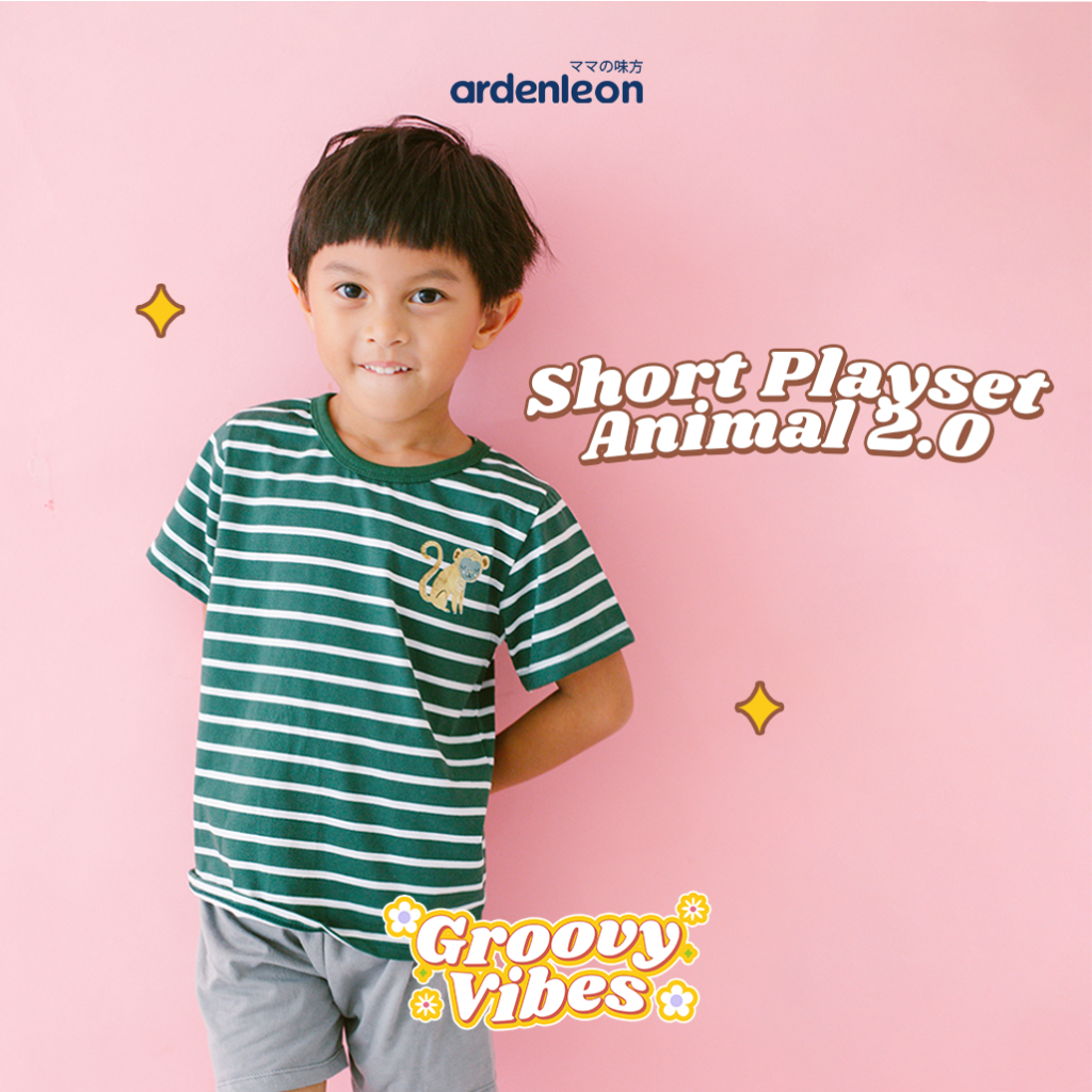 ARDENLEON Setelan Anak Kaos Anak Short Playset Stripe Animal 2.0