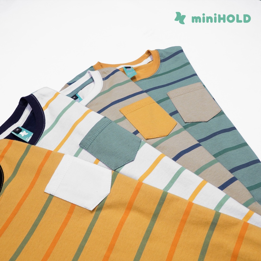 MINIHOLD Stripe /Salur Pocky Series Baju Kaos Anak Pocket Motif Salur Cotton Combed 30s Usia 1-12