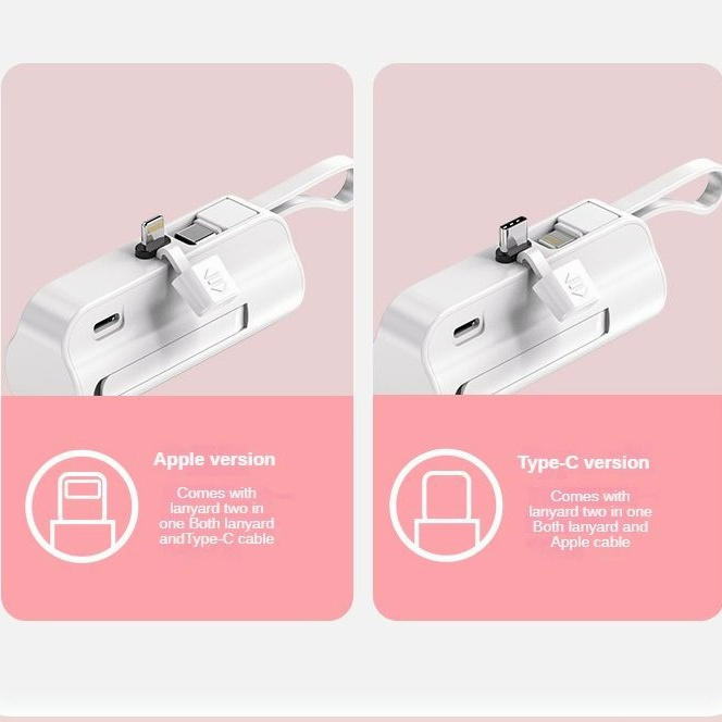 Powerbank Lightning+Type-C 2in1 5000mAh portabel mini bawaan bank daya kabel bank pd20w superfast pengisian tipe-c