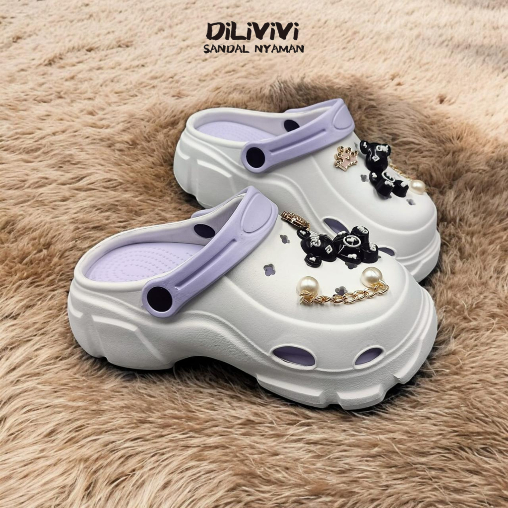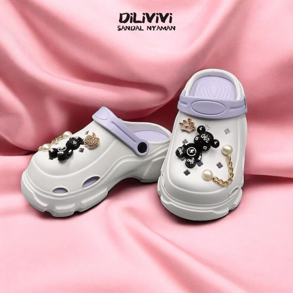 DILIVIVI 832EF | Sandal Baim Anak Perempuan Wedges Jibbitz Bear Size 24-35