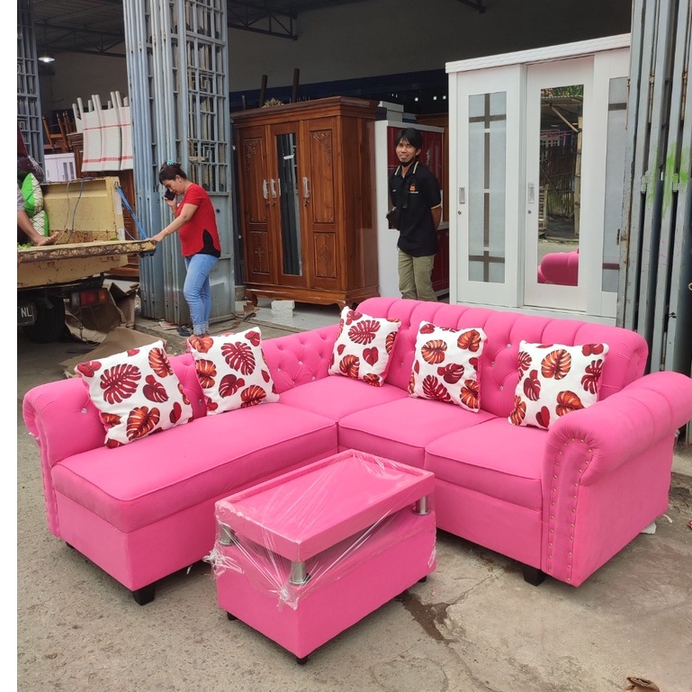 Sofa L Putus Kancing Sofa L Minimalis Sofa L Santai Bahan Beludru SOFA LETTER L