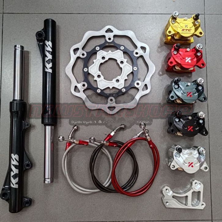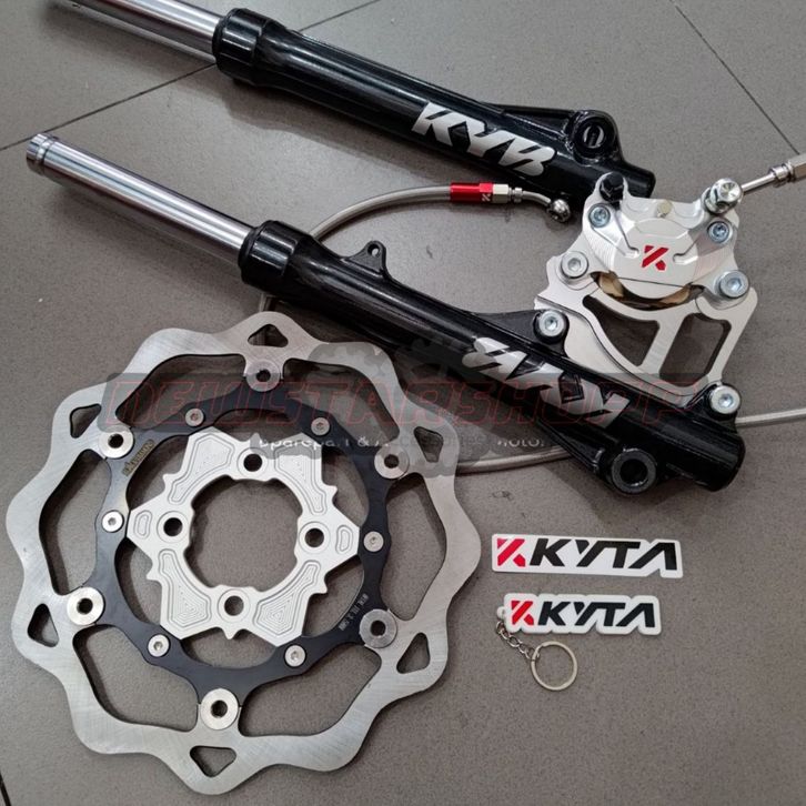 Paketan Shockbreaker Shock Skok Depan KYB Zeto + Kaliper KTC 2piston 2p KNV2 Slim + Disc Piringan Floating 260mm Model G